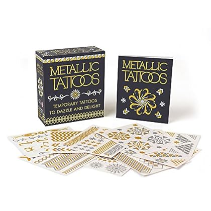 Take part in the latest fashion trend: jewelry-inspired metallic temporary tattoos that add beauty and glamour to any look!Whether you're a glitzy diva or a boho queen, there's a metallic tattoo look for you! Coat your arms in funky metallic bangles to wear to your next music festival, wear a few midi rings for your next trip to the beach, or try a small pendant for simple sophistication -- the possibilities are endless. This mini kit includes: 12 sheets of beautiful, shimmery temporary tattoos 32-page book with style inspiration, suggestions for creating custom looks, and tips for application and removal