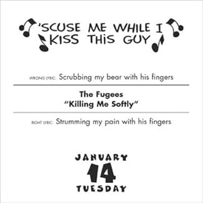'Scuse ME While I Kiss This Guy 2003 Calendar (Tear Off Calendar) Friday, January 10, 2020 Edit Category: Books,Arts & Photography,Music'Scuse ME While I Kiss This Guy 2003 Calendar (Tear Off Calendar) Details ReviewsIT's Hillarious my fav is the one about Walnuts and Communists. I'ts so funny. Share this post